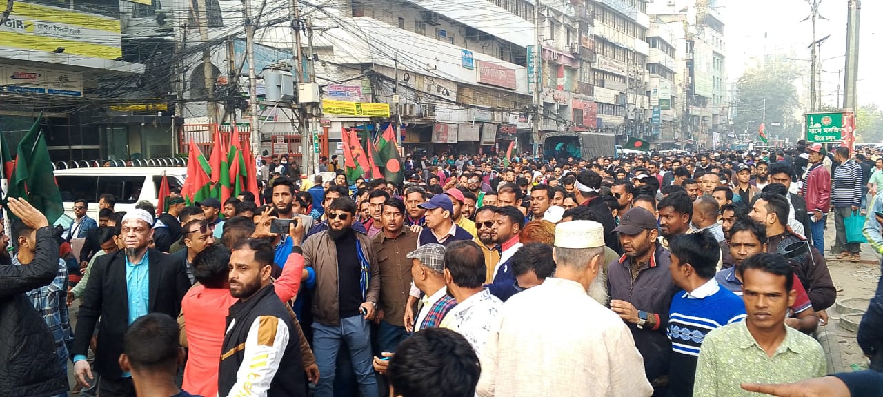 সংগঠন তিনটির নেতা-কর্মীরা মাথায় জাতীয় পতাকা বেঁধে এবং হাতে ফেস্টুন, জাতীয় পতাকা ও দলীয় পতাকা নিয়ে কর্মসূচিতে অংশ নেন।